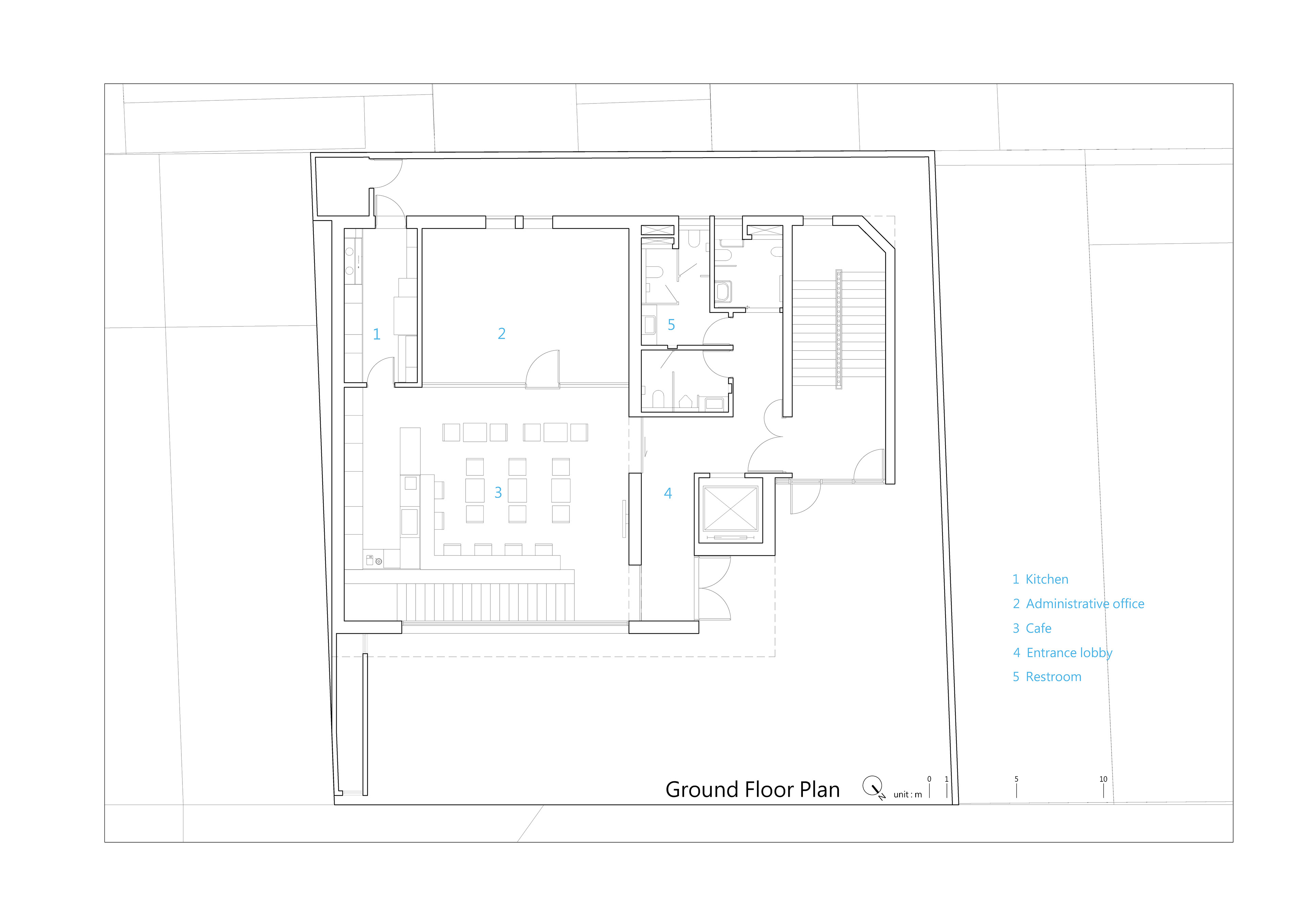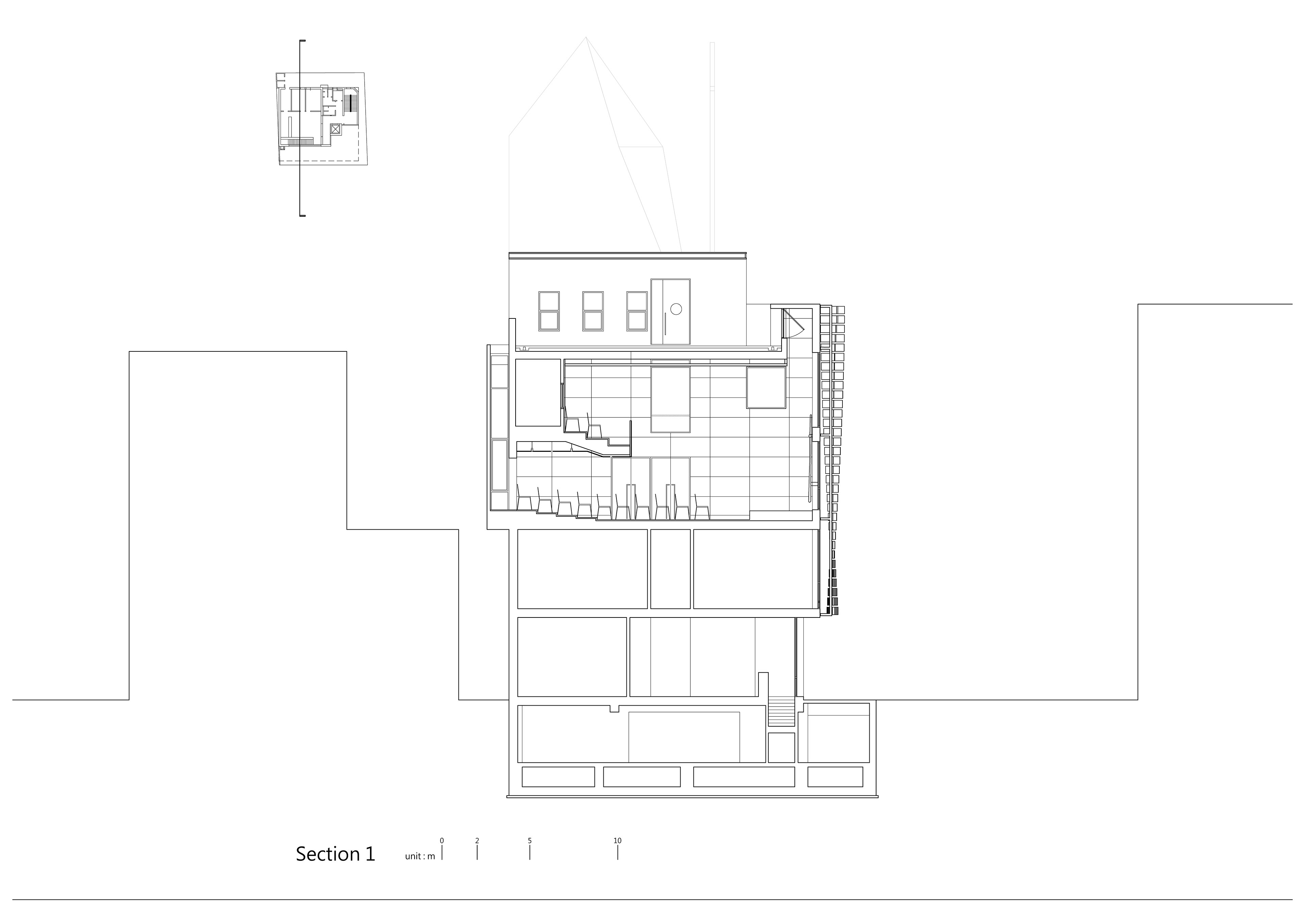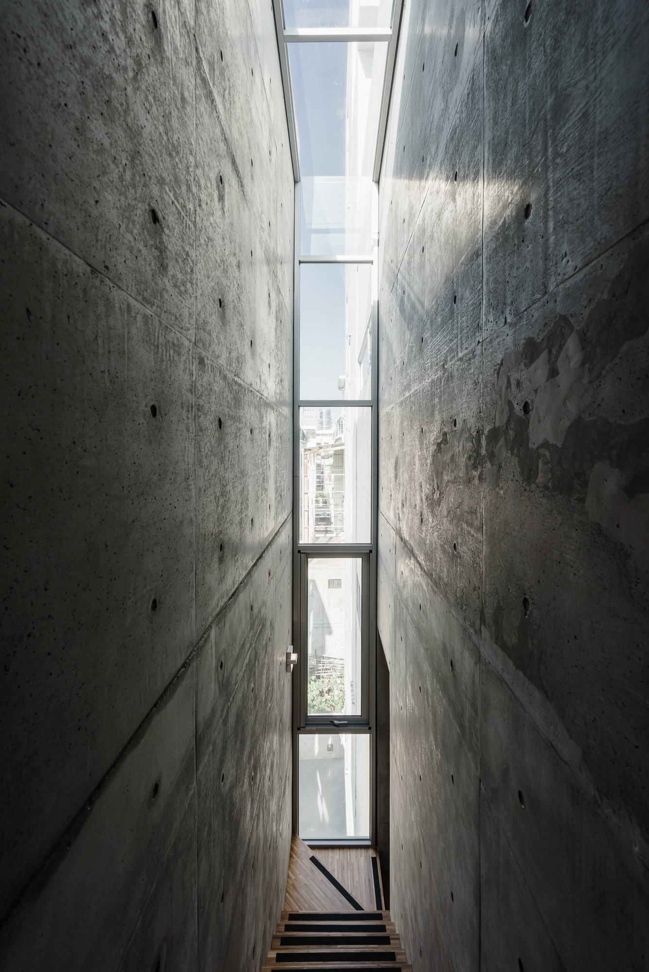 The site of the new church is surrounded by secular residential buildings. Responding to this contextual city fabric as well as the pastor’s vision, the lower floors of the church are used as socializing spaces such as coffee shop and family-friendly book store, inviting the community in and knitting the church closely with the life of the neighborhood. On the other hand, the dematerializing, white staircase leading to the sanctuary above transforms the spatial characteristic from the mundane to sanctified space by guiding the act of rising and turning through spilled natural light.